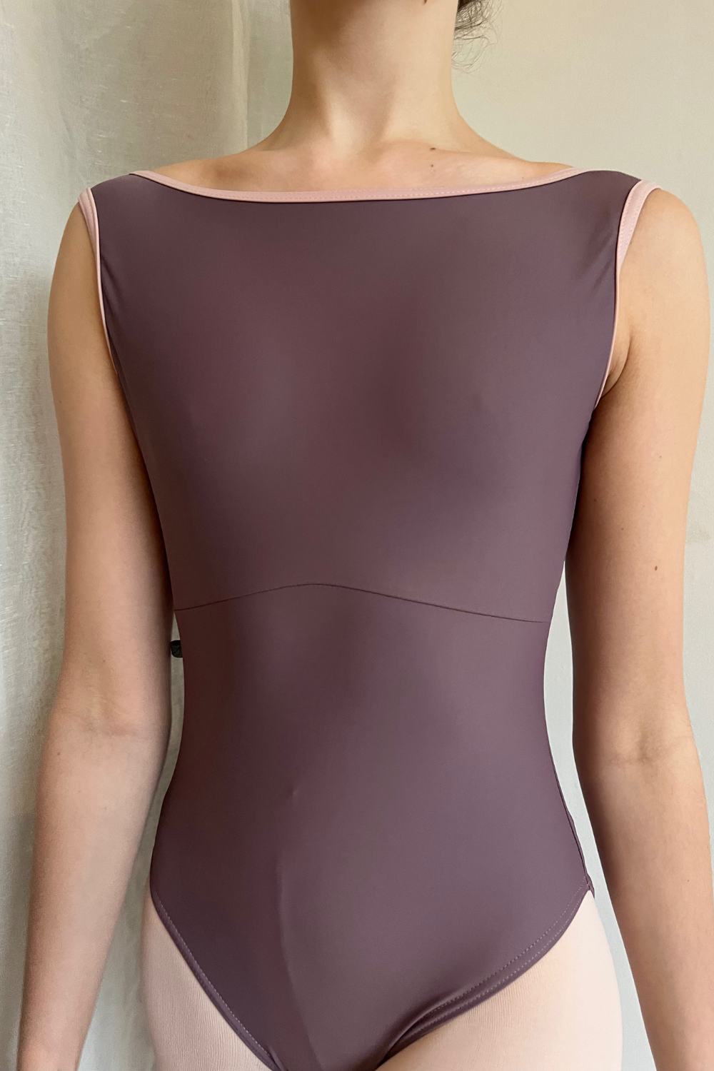 Mersey Sleeveless Boatneck Leotard - Mocha with Cherry Noir trim